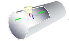 熱式氣體質(zhì)量流量計(jì)是利用熱傳導(dǎo)原理測(cè)量氣體質(zhì)量流量的儀表。熱式氣體質(zhì)量流量計(jì)的傳感器由兩個(gè)基準(zhǔn)級(jí)熱電阻(鉑RTD)組成。一個(gè)是質(zhì)量速度傳感器T1,一個(gè)是測(cè)量氣體溫度變化的溫度傳感器T2。當(dāng)這兩個(gè)RTD置于被測(cè)氣體中時(shí),其中傳感器T1被加熱到氣體溫度以上的一個(gè)恒定的溫差,另一個(gè)傳感器T2用于感應(yīng)被測(cè)氣體溫度。隨著氣體質(zhì)量流速的增加,氣流帶走更多熱量,傳感器T1的溫度下降,要維持T1、、T2恒定的溫度差,T1的加熱功率就要增大。根據(jù)熱效應(yīng)的金氏定律,加熱功率P、溫度差△T(T1-T2)與質(zhì)量流量Q有確定的數(shù)學(xué)關(guān)系式。
